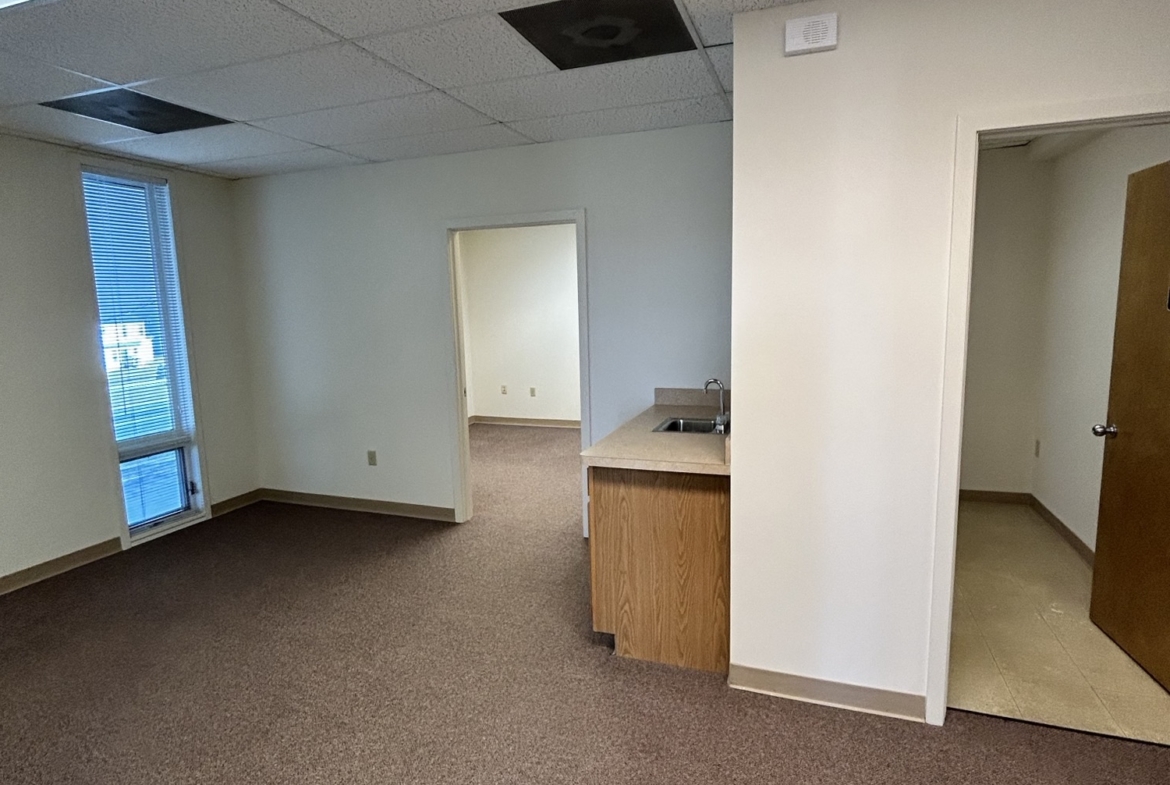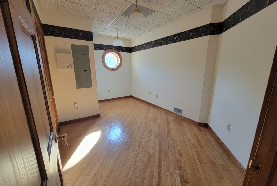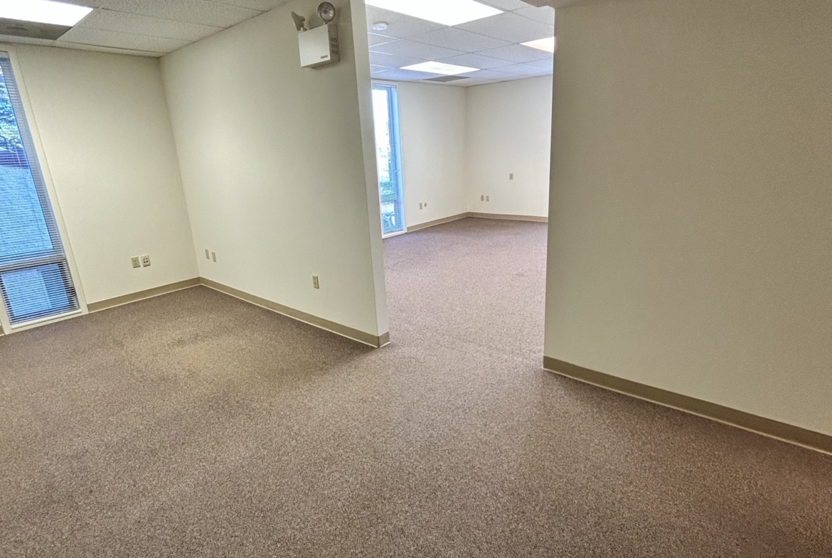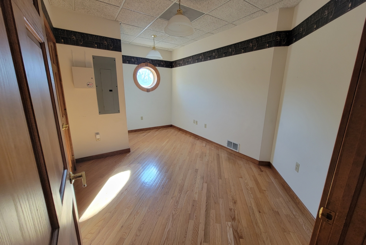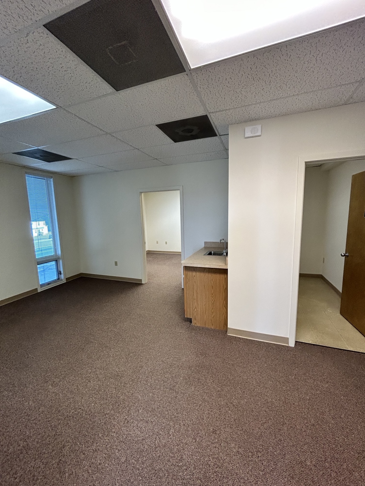 The second-floor office features +/- 965 SF, including two private offices, 1 ADA restroom, and internet access.