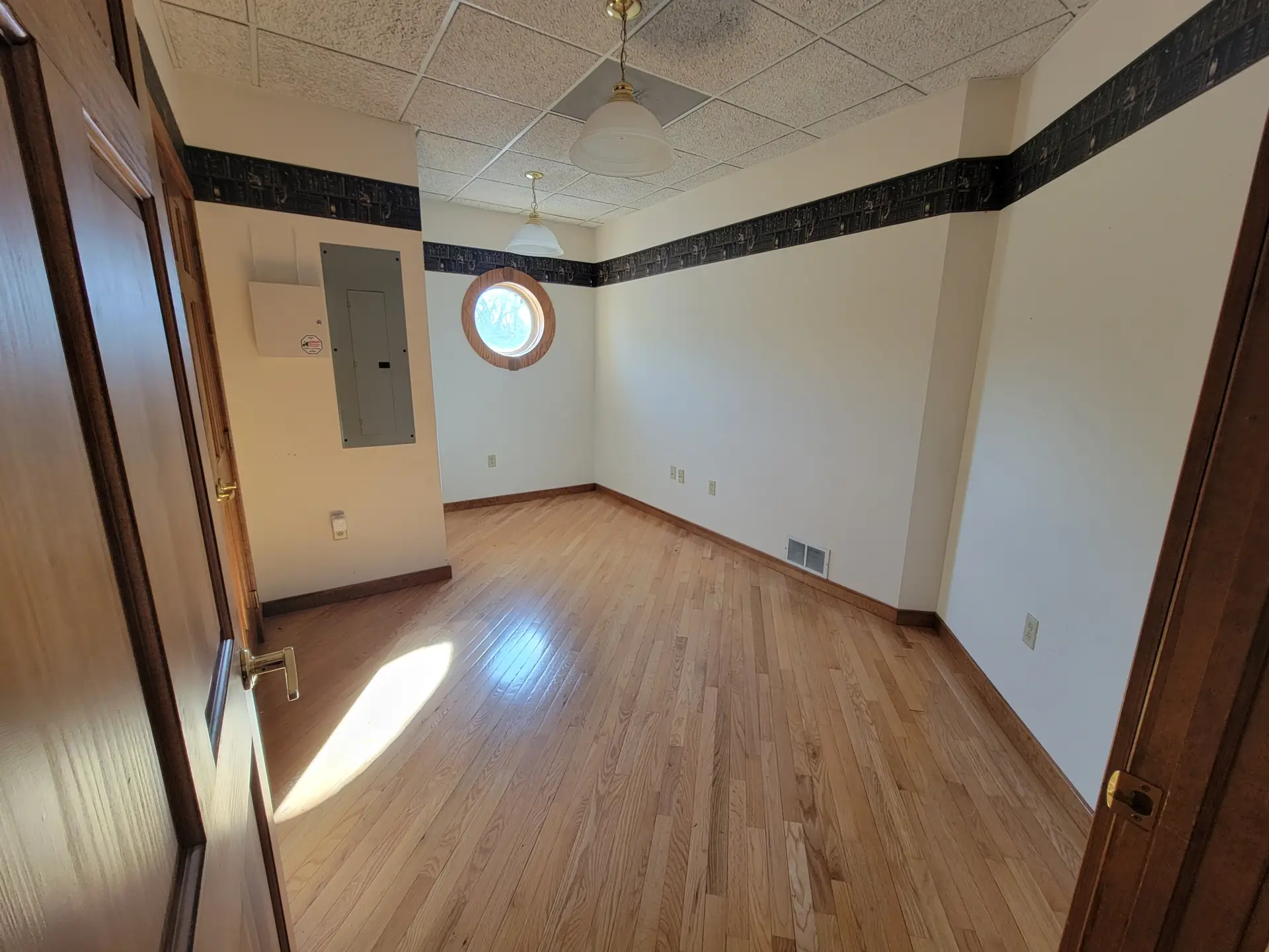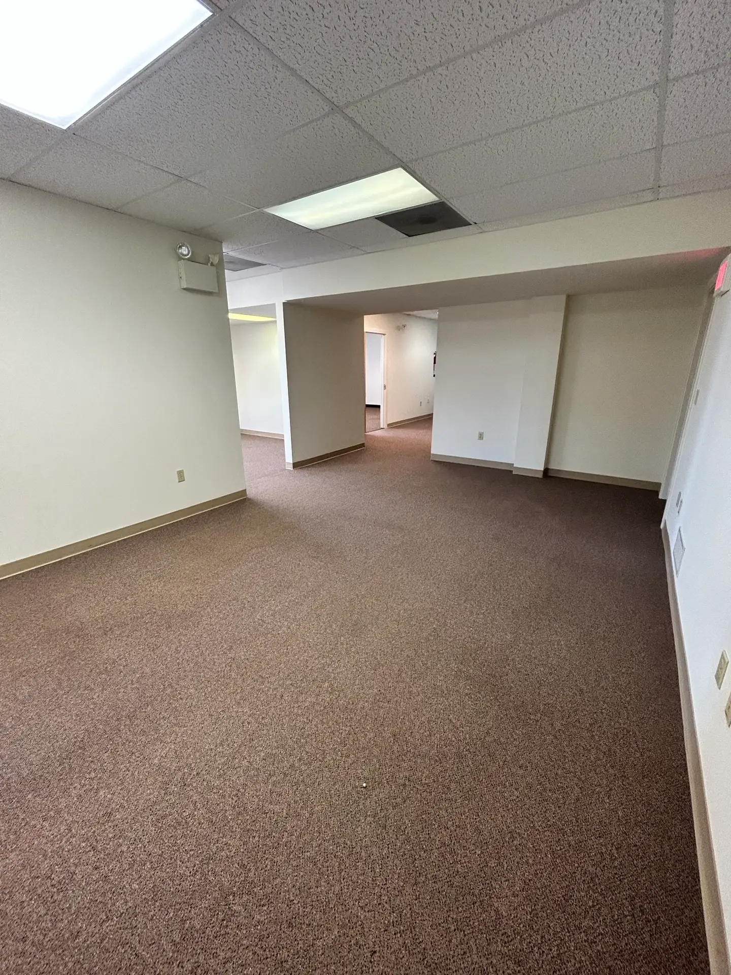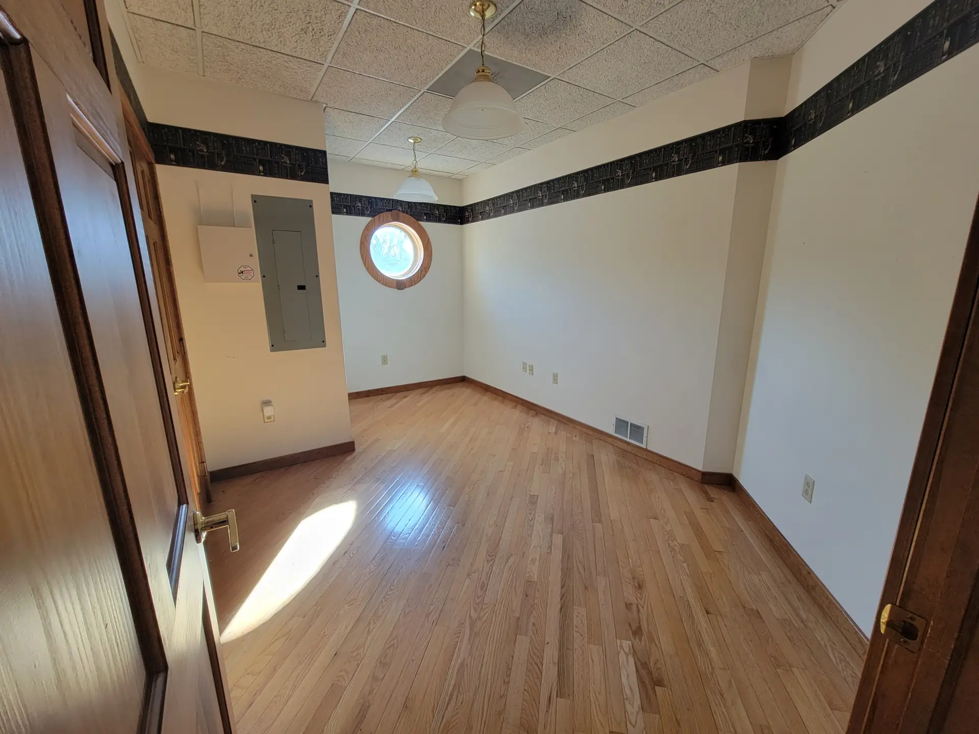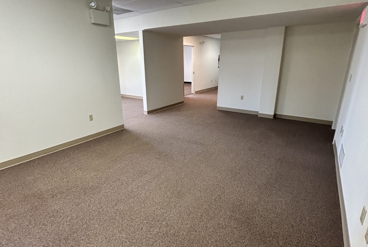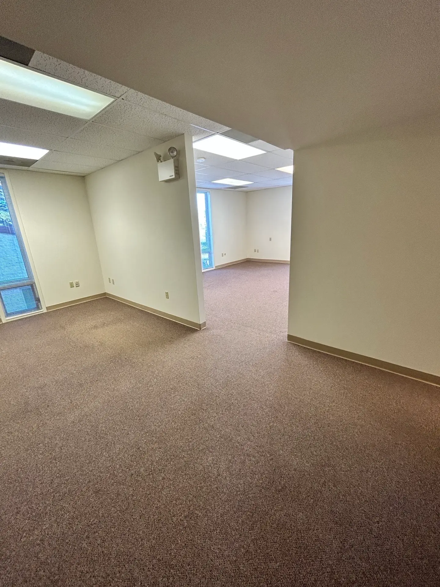 The second-floor office features +/- 965 SF, including two private offices, 1 ADA restroom, and internet access.