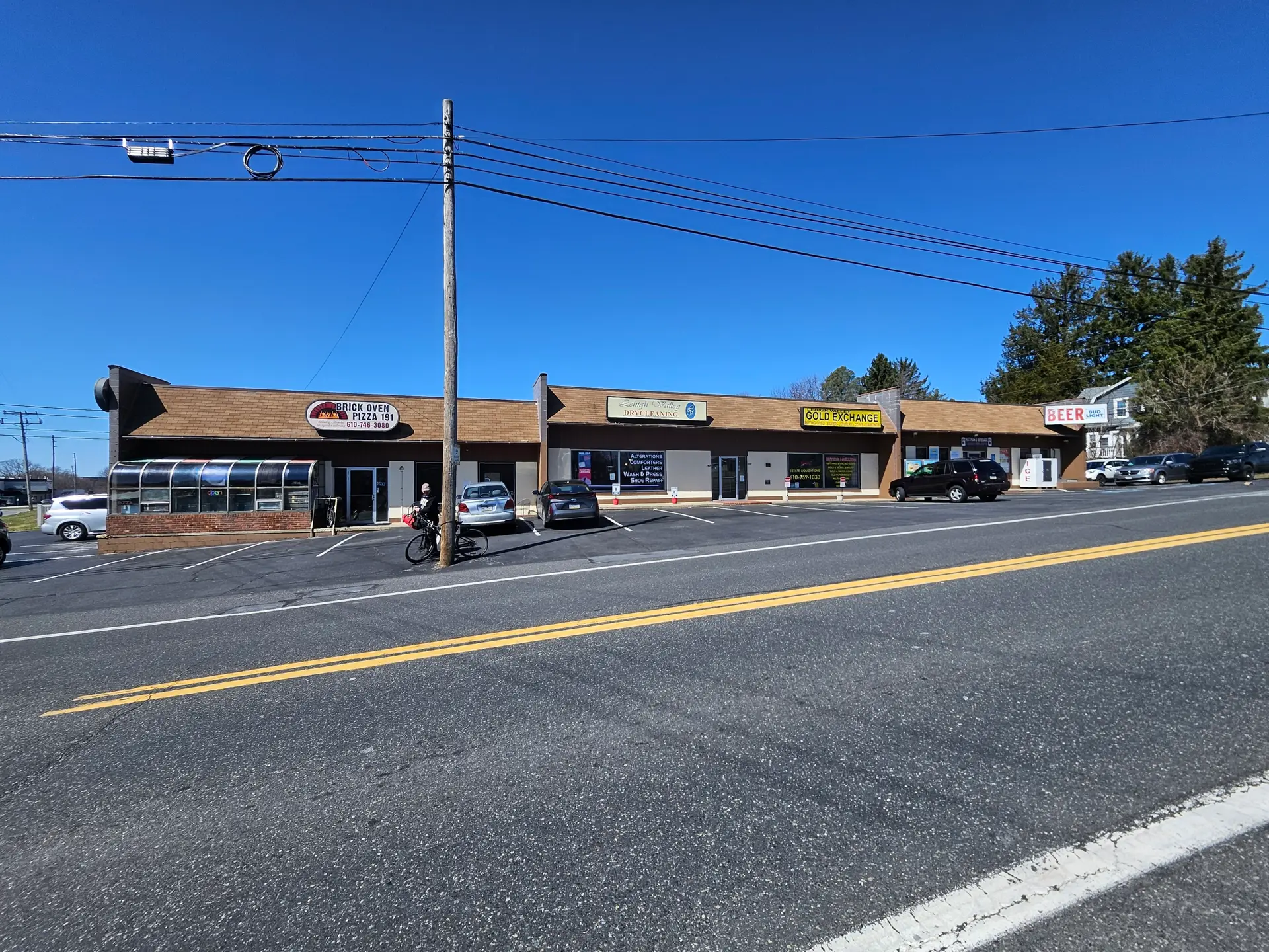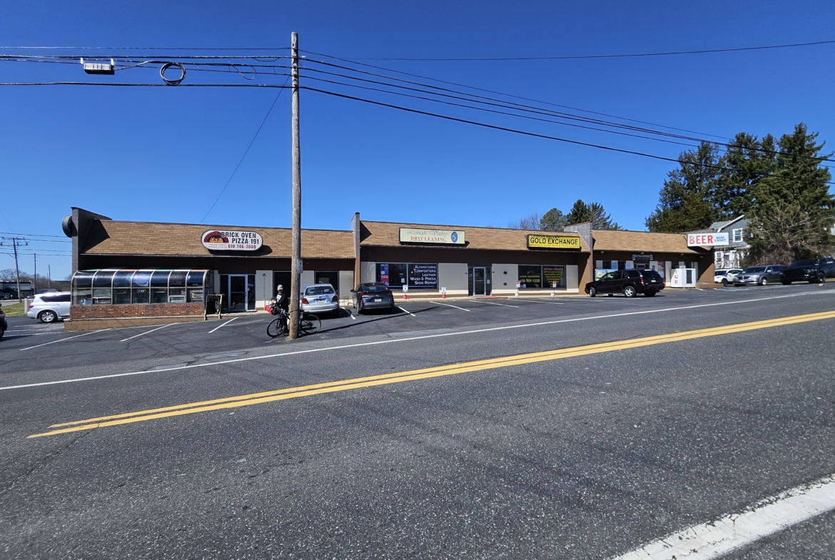 +/- 1,800 Sf space is available for lease in Nazareth,PA. The space features one ADA restroom, a Flexible open floor plan, rear double doors for loading and unloading, ample storage, and parking. Great use for convenience stores, cleaners, Cleaning services, fitness/wellness centers, and many more. Join 191 Brick Oven Pizza, LV Gold Exchange, and MattMan’s Beverage. Conveniently situated on Route 191, with easy access to Routes 33, 22, and 248, this strip center is a prime location for your business.
