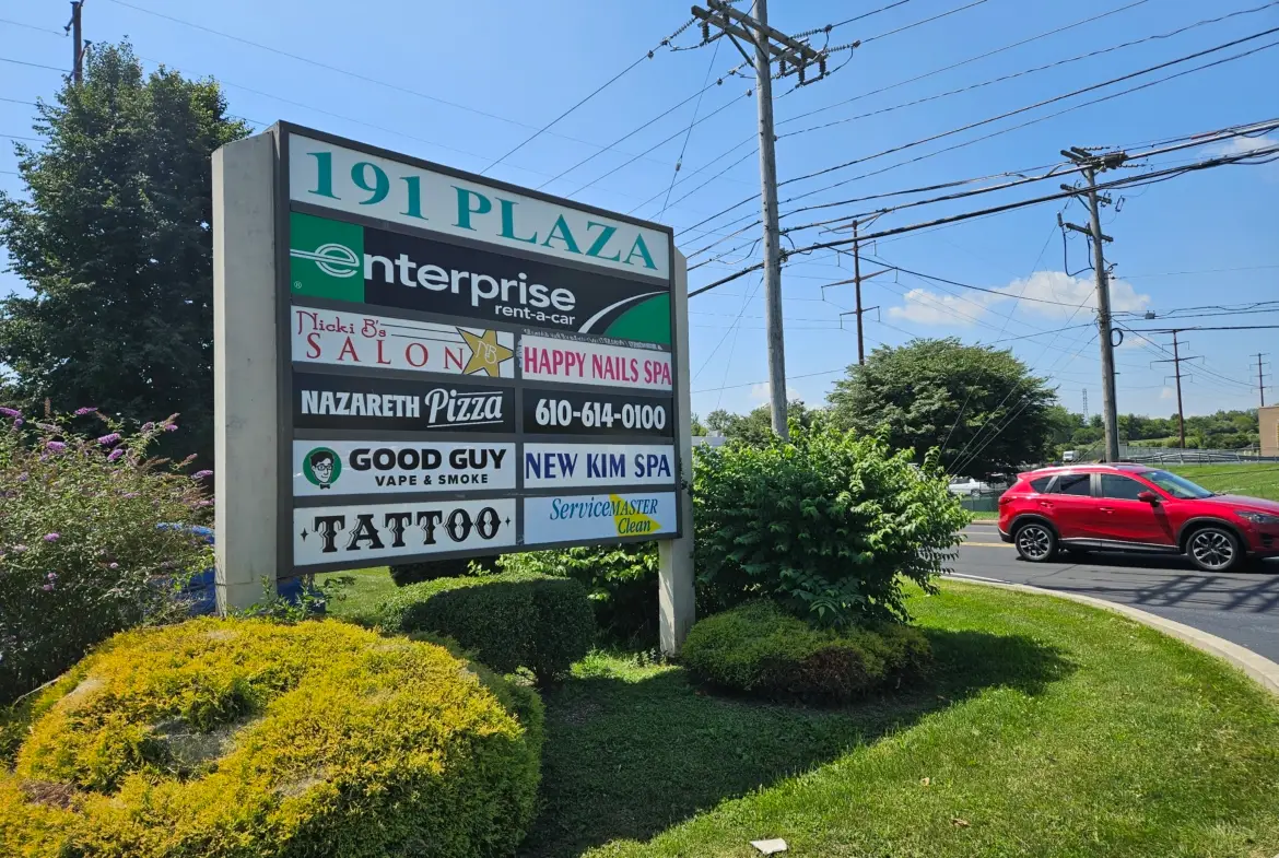 Retail space is available for lease in Nazareth, PA. The space is +/—3,000 SF and features Two ADA restrooms, flexible open floor plans, and ample storage. Great space for a Beer distributor, medical office, fitness/ wellness Center, and many more. Join Enterprise Rental Car, Happy Nail, New Kim Spa, Good Guys Vape, Nazareth Pizza, and many more. Strip Center is located on heavily traveled Route 191, close to Routes 33, 22, and 248. Easy access to the center; call today for additional